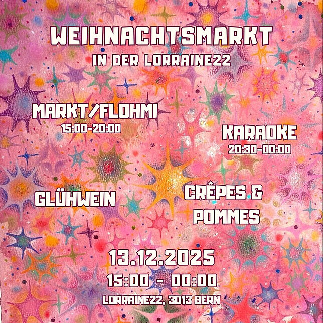 Am 13. Dezember 2025 lädt die Lorraine22 zu einem Weihnachtsmarkt mit Flohmarkt, Glühwein, Crêpes und Karaoke ein – Eintritt frei und alle sind willkommen!