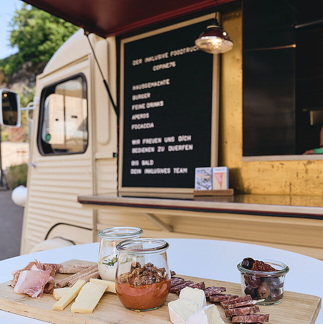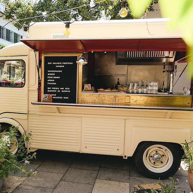 Unser inklusiver Oldtimer-Foodtruck besucht dich gerne an deinem Privat- oder Firmenanlass. Mit kühlem Bier, erfrischenden Getränken, leckeren Apéro-Plättli und schmackhaftem Street Food verwöhnen wir dich und deine Gäste. Mit einem hippen und modernen gastronomischen Angebot schaffen wir ein inklusives Erlebnis, welches sich für alle selbstverständlch anfühlt.